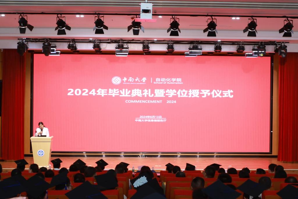 6月13日下午,必赢766net手机版2024届毕业典礼暨学位授予仪式在信息楼108报告厅隆重举行,中国工程院院士、全国教书育人楷模桂卫华教授,学院学位评定委员会主席阳春华教授,学院党委书记易险峰、学院院长王雅琳及学院领导班子全体成员、各系主任、书记,各办公室主任和教师代表、家长代表出席本次活动,仪式由学院党委黄亚副书记主持。大会现场中国工程院院士桂卫华教授寄语毕业生投身强国建设仪式在庄严肃穆的国歌声中拉开序幕。本...
