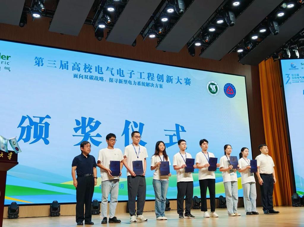 2024年8月10至12日,第三届高校电气电子工程创新大赛全国总决赛在三峡大学隆重举行。我院学子凭借作品《引入电流汇聚器的深海浮式风力发电场集电系统一体化拓扑设计》斩获软件赛道全国特等奖(全国共8项),实现了我校在该项赛事上的首次突破! 颁奖现场本届大赛共有来自全国375所高校3075个团队报名,152支队伍进入全国总决赛,历经海报展览、作品演示与答辩,最后评选出全国特等奖23项,其中硬件赛道10项,软件赛道8项。我院参...