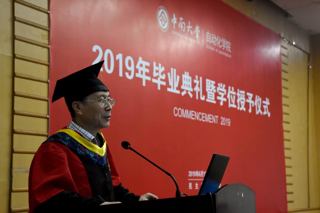 桂卫华院士、阳春华院长与董密教授的讲话把活动推向高潮,桂院士回顾了自己在求学时期的经历,有感而发的说到中南大学的经历在心中留下很深的记忆,总结这段经历,最大的影响就是“求实”二字。希望同学们在今后的道路中“老老实实为人,踏踏实实做事”,在不同的岗位上努力奋斗,不只在乎结果,而是在过程中尽自己最大的努力,为国家做出贡献,为国家的发展尽自己的努力,努力就是成功。阳春华院长对毕业生们表达了真挚的祝贺同时也提出了三点要求,第一是要求同学们要热爱伟大祖国,勇担时代责任。第二要牢记“知行合一,经世致用”,发扬中南品格。第三要增强学习紧迫感,保持终身学习的好习惯。董密老师也热情地祝贺大家顺利毕业,她肯定了同学们奋发向上、勇于担当的精神面貌。也给予同学们在开始新的人生征程时要坚持学习,永怀梦想,简单做人、踏实做事的人生建议。