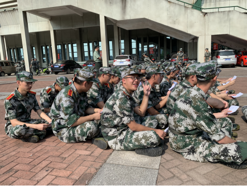 军训生活训练是主要,但也有适当的放松。排长在休息时教给大家各种游戏,尤其擅长在同学们不注意时突然发出口令,于是有些同学措手不及被逮个正着,就得接受小小的惩罚了。当然也有“意外情况”:教官自己“中彩”了。就这样,到处充满了欢声笑语。有时候同学们自告奋勇表演才艺,唱歌跳舞……不仅展现了自己的另一面,也让别人由此结识这位同学。甚至排与排之间也会相互拉歌,这时要比自己唱兴奋多了:一二三四五,我们等的好辛苦!一二三四五六七,我们等的好心急!一二三四五六七八九,你们到底有没有!另一个排当然不能输了气势,于是在排长的带领下引吭高歌,回应对方。如此一来一往中,同学们不再是一个个分离的个体,而是融合为一个大家庭,由教官带领,沿着完善自我的方向前进。