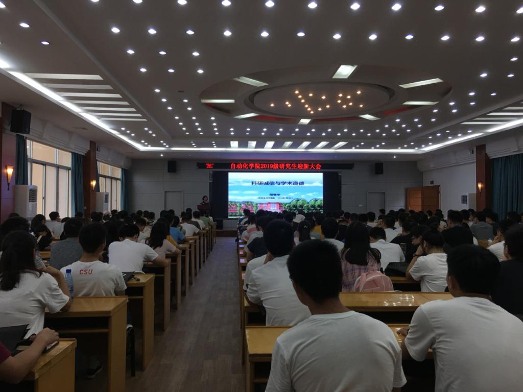 会议伊始,阳春华院长代表学院欢迎各位2019级研究生新生的到来。她向全体与会人员介绍了必赢766net手机版的发展历史、丰富的学科设置以及目前学院的科研项目与科研资金的情况。她勉励各位同学利用学院丰厚的科研资源进行科学研究,为必赢766net手机版的发展做出自己的贡献。随后,阳院长还做了以“科研诚信与学术道德”为题的专题报告,劝诫各位同学要诚信科研、诚实做事。她说,一个优秀的科研工作者不仅要拥有杰出的科研能力,也要拥有高尚的道德,二者相辅相成。她向同学们分享了一个科研工作者应有的基本道德素养,即“崇尚科学与追求真理、热爱祖国与人民、既有知识也有能力、既有学问也有道德”,她向同学们发出学术诚信倡导,希望同学们弘扬科学精神、坚守科学道德、遏制学术不端、共建良好学风,在必赢766net手机版这个平台上学有所成、学有所获。