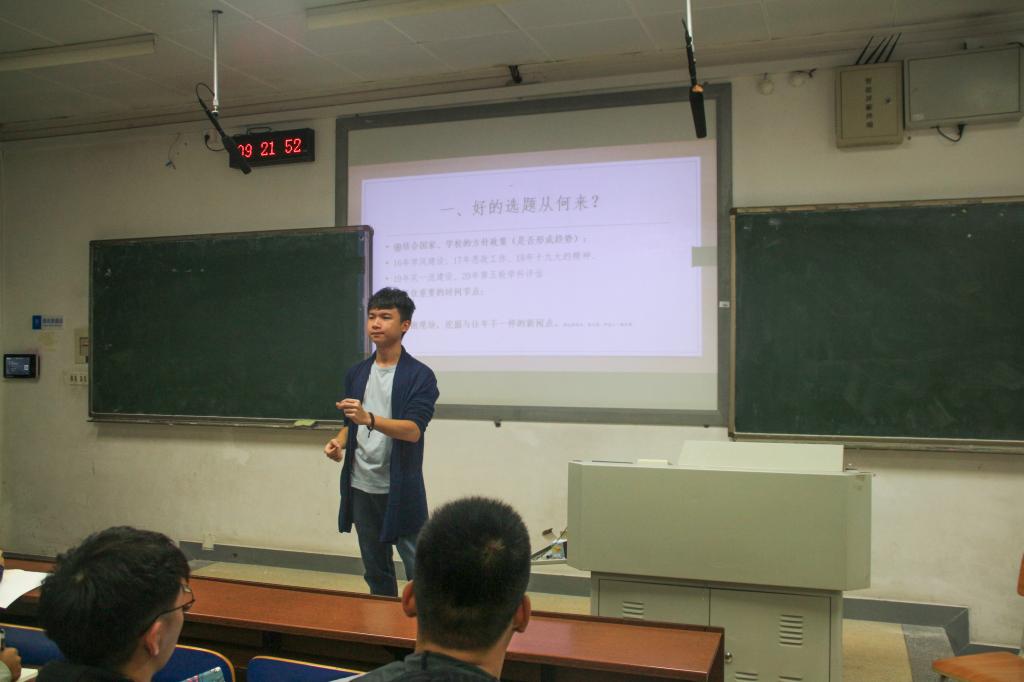 周一苇学长以“新知·新锐·新见”为主题,重点介绍新闻采编的知识、技巧。他分享了新闻选题切入点、采访注意事项以及人物稿和会议稿的写作方法,并按照新闻结构详细介绍新闻写作的技巧与禁忌。