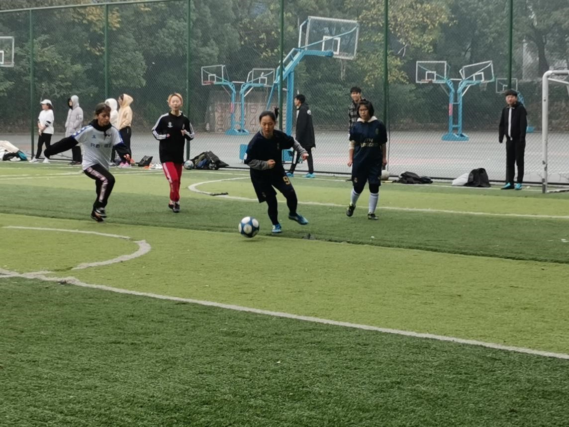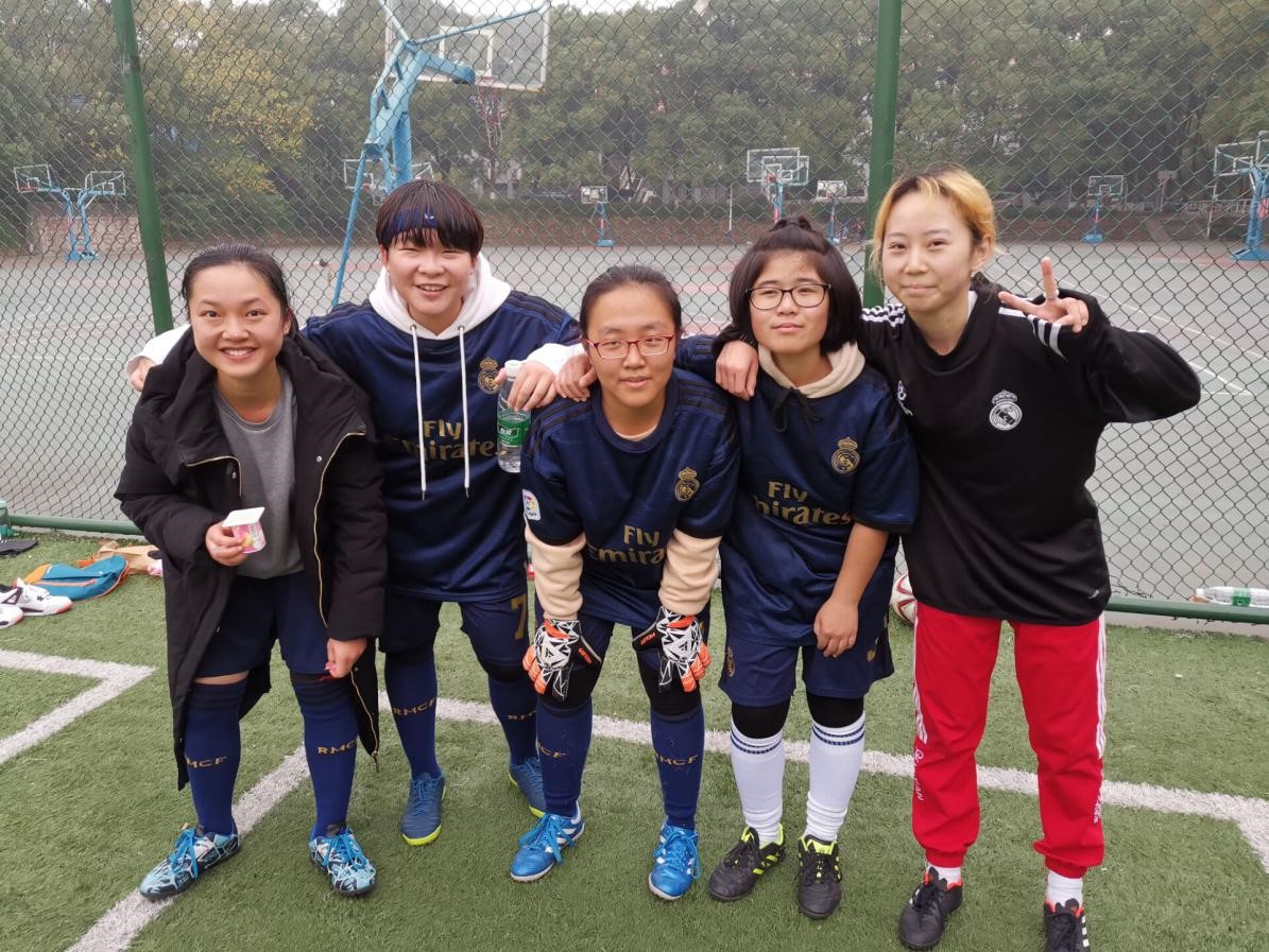 同时在另一边,南校五人制足球场,女子足球赛自动化、资生联队对战资安队,双方势均力敌,比赛打得精彩无比。期间我院多次受到对方围堵,但仍以坚韧的毅力和高昂的斗志执着着,奔跑着,努力着。跌倒了,打疼了,跑累了,再坚持一下。没有人喊疼,没有人抱怨,大家只为同一个目标而齐心协力。上半场,由于对方门将的失误,我方进了一个乌龙球。下半场,比赛继续胶着,在对方2:1领先的情况下,在最后八分钟内,常喆同学连进两球,帮助我方锁定胜局,进入十进八赛局。自院女足队长王朵菁说:“在日复一日的训练中,受伤是难免的,我和后卫更是新伤添旧伤,每天回到宿舍,我和后卫(同宿舍)都会比谁身上伤多…前三场比赛我们上半场踢的很好,配合也很到位,但因为体力原因,而且我们刚好五个人,一个替补也没有的我们心有余而力不足,到下半场就有点坚持不住了,容易丢球。但我们从未轻言放弃,我们绝不认输,愈挫愈勇,为此我们也重新调整了战术,在保存体力的同时进球防守。作为一个半路出家的门将,训练和比赛的经历让我成长很多,我很感激我的坚强又可爱的队友们,感激带训的学长们,我也懂得了团队协作的重要性,我越来越热爱足球运动了。”王朵菁同学对足球运动的热爱令人动容,这不正是自动化学子顽强拼搏的体育精神最好体现吗?