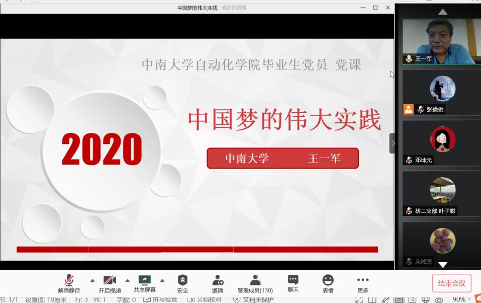 为深入学习贯彻习近平新时代中国特色社会主义思想和党的十九大精神,持续开展 “不忘初心、牢记使命”主题教育,根据校党委的工作部署,必赢766net手机版于6月15上午10时开展线上党课,学院党委书记王一军教授以“中国梦的伟大实践”为题为全体毕业生党员授课,全院150余名毕业生党员参加。