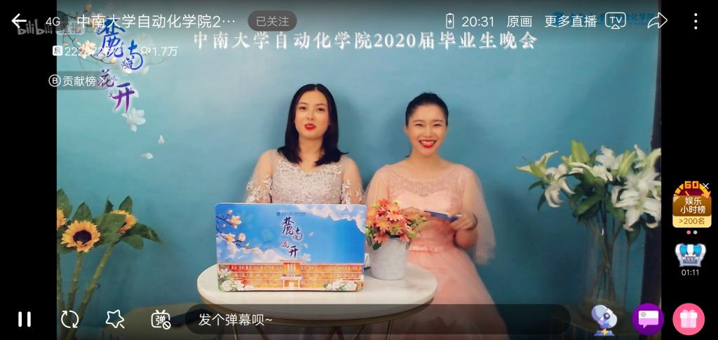 学院领导老师为毕晚倾情寄语,熟悉的辅导员们变身网络主播,晚会以主题视频《麓南花开》开场,将同学们带回了中南的校园时光,直播室气氛活跃,弹幕不断刷屏。相声《中南新闻联播》承包了整场晚会的笑点,晚会在全体毕业班班长合唱《不说再见》中落下帷幕,穿插了四年大学回忆的歌曲mv,让同学们纷纷泪目。