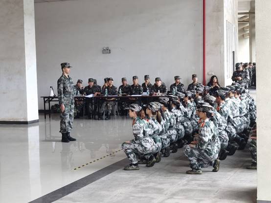 比赛伊始,远处传来其他连队教官的号令,十五连的同学们在休息区待命。连长马晓路为了缓解大家的紧张感,让大家放松站立,并将平日里训练的要点语重心长地和同学们强调了一遍。同学们认真地听着马连长的教诲,并在心中默默地重复演练表演动作。终于到了十五连表演的时间,十五连的表演由二排、四排参赛。同学们昂首挺胸,迈着整齐的步伐到达会操场地。“立正!”全体同学肃立。接着,同学们按照教官的口令,规整讯速的完成了稍息、跨立、敬礼等动作。令人最为印象深刻的是蹲起动作。随着一声“蹲起”令下,同学们以几乎无延迟的速度开始行动。他们先向后划出左脚,脚趾点地,后双腿弯曲,上半身挺直下降,直至完全蹲下。整个过程没有一丝拖泥带水,虽然大家的身高并不相同,但下降的速度却保持一致,令人啧啧称赞。