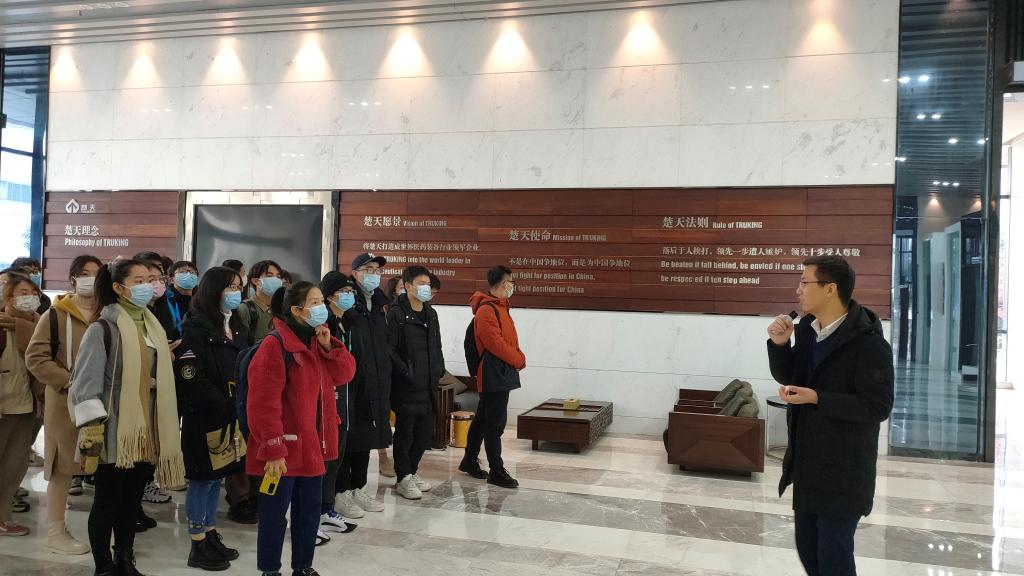 为了帮助学生明确职场需求,了解和适应企业的用人标准,增强学生的求职竞争力,深入了解科技企业的生产管理模式、运营方式以及工作氛围,在未来的就业过程中获得更多的求职优势。2020年12月10日,必赢766net手机版组织勇往“职”前实践活动,组织同学们参观楚天科技集团。研究生辅导员刘雯,本科生18级辅导员陶卓敏、马慧敏,带领48名同学参加了此次活动。