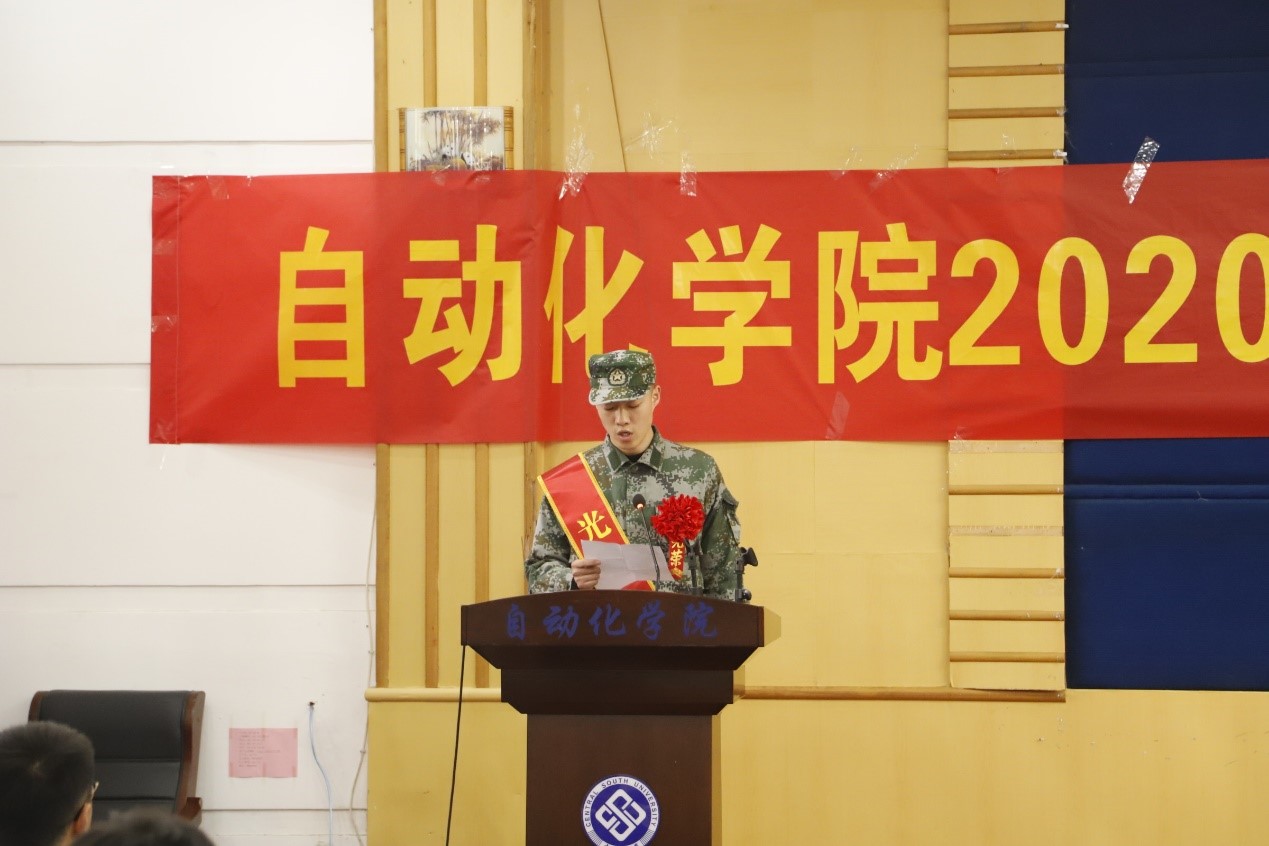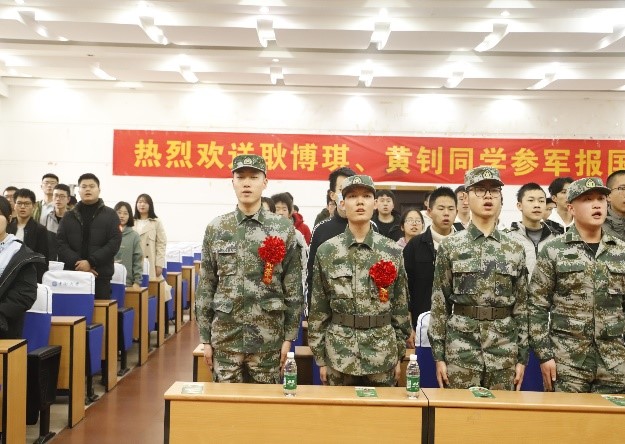 15时许,在庄严的国歌声中,欢送会拉开了帷幕。首先由必赢766net手机版国防教育专干刘海澍对两名春季入伍新兵2019级自动化专业1903班耿博琪,2020级自动化大类2011班黄钊进行了简单介绍,而后嘱托激励他们在军营能建功立业,报效祖国。