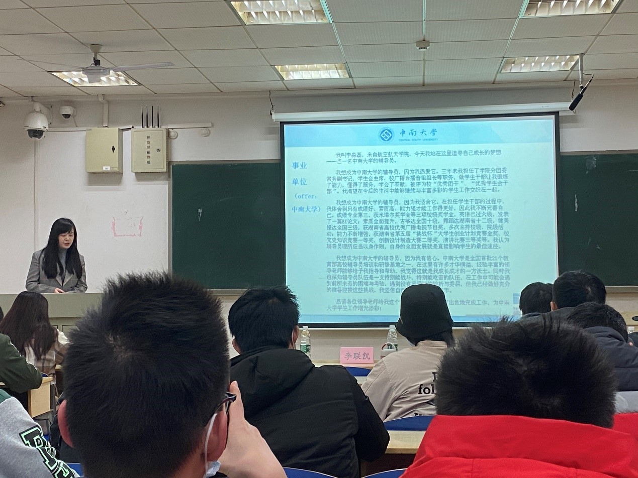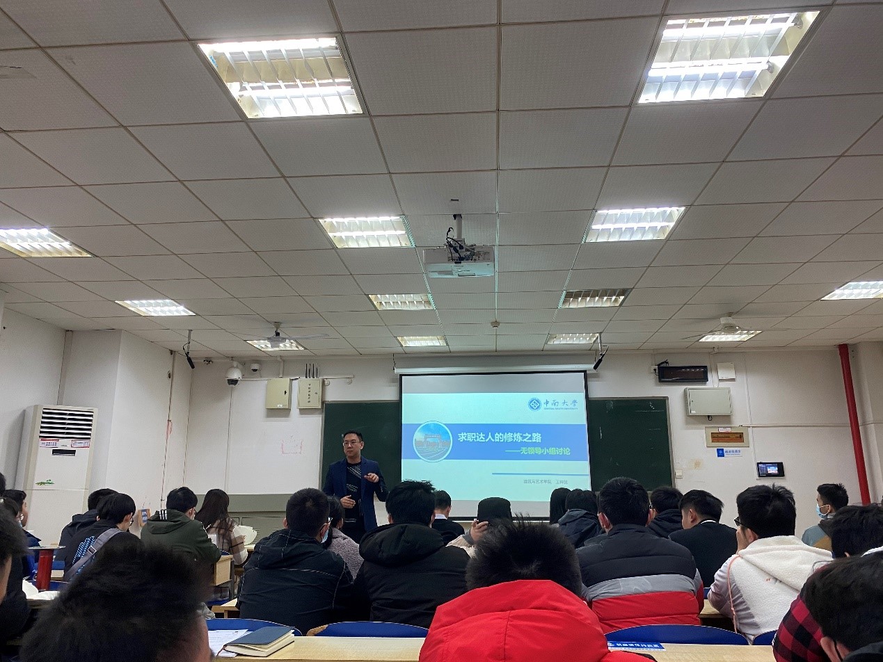 中南大学就业指导中心的李联凯教师,用自身丰富的经验介绍如何制作、优化个人的简历。他指出,简历应该具备信息呈现、能力凸显和话题导入三部分要素。并且重点讲解了如何在简历中突出个人信息与经历。就业指导中心无领导小组讨论实验室王梓懿教师,给大家介绍了无领导小组讨论的流程、分类与分工。强调了自我介绍在无领导小组讨论中的重要性,提议每人最好准备三份自我介绍,时间分别是三分钟,一分半钟和三十秒,以应对不同的面试要求。从事职业生涯规划与就业指导工作八年的李淼磊教师,给大家介绍了如何去更好地表达自我。李老师以自身为例,点对点剖析了如何介绍自己才能使得自己更显得人岗合一。她说:“首先是要表达自己热爱该岗位,其次要展现出胜任该岗位的能力,最后要表达出自己有能力承担该职责的能力与信心。”并且李老师还强调在沟通上,要有良好的素质,不卑不亢,情绪不行于色。
