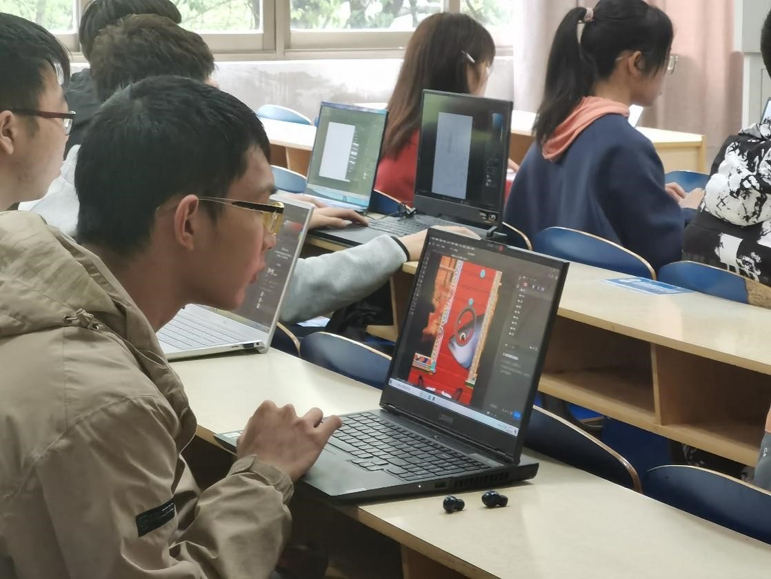 首先,郭铁峰向参加培训的学生介绍了Photoshop的出版公司,并展示了PS的强大功能和PS在我们生活中的作用。随后着重介绍了图像格式的使用方法,例如PS软件界面、工具栏的具体应用、图片的配色处理、图层的新建使用以及抠图的方法等等,这些实用技巧的分享让在场的学生拍手称赞。同时,为了让学生能更加直观地理解PS的使用,郭铁峰分析了几款海报的优点与不足,还通过大量的素材对比介绍了海报设计的配色原理和设计规则,并且还详细介绍PS中各工具在海报设计中的作用。郭铁峰讲解耐心细致、通俗易懂、生动幽默,让学生们受益匪浅。