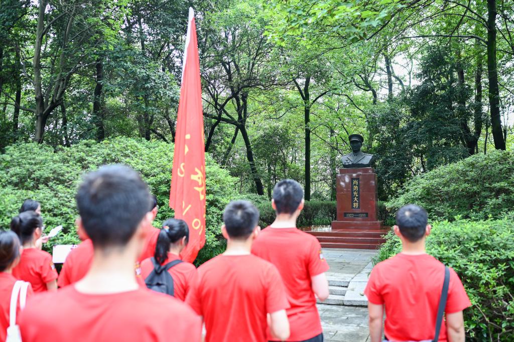 学生党员们瞻仰了爱国将领肖劲光的雕像。在雕像前,党员代表为党员们深情述说了肖劲光的光荣事迹。肖劲光青年时期曾两次赴苏联学习军事知识,深受列宁革命思想的影响。在三十年南征北战的革命生涯中,他打沈阳、围北平、越华北、渡长江、占武汉、进长沙,为新中国解放做出了不可磨灭的贡献。中华人民共和国成立后,奉命组建中国人民解放军海军。30年来,他主持建立了北海、东海、南海三支舰队和海军航空兵,领导创建了中国海军的许多个第一。听完讲解员的介绍,在场的党员同志们无不为之动容,这位为中国奉献一生的开国将军的身影从此深深刻画在他们的心底。