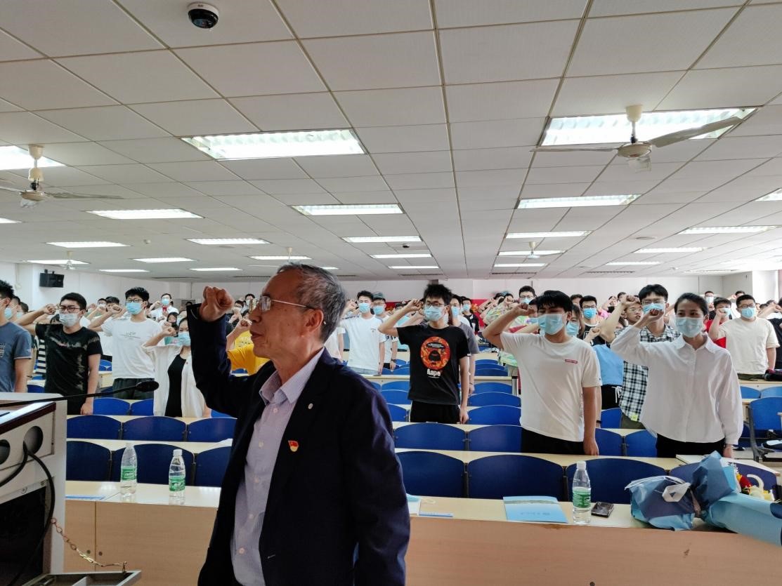 最后,桂卫华院士带领全体毕业生党员重温入党誓词,“为共产主义奋斗终身,随时准备为党和人民牺牲一切,永不叛党”,几代共产党人的初心与使命、迈向未来的责任与信心在铿锵有力的誓言中交相辉映、久久回荡。