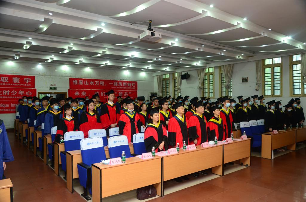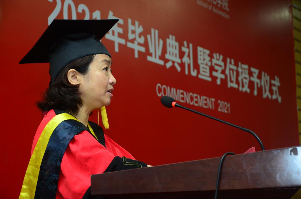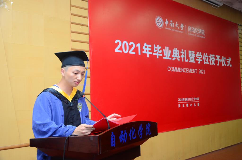 蒋朝辉教授作为教师代表,阳春华院长代表学院先后致辞。蒋朝辉教授回顾了自己在民主楼度过的求学时光和追梦之旅经历,希望学生们在今后的道路中秉承民主楼的文化精神去工作和生活。阳春华院长对毕业生们表达了真挚的祝贺同时也表示今年恰逢中国共产党建党100周年,在这个特殊的节点毕业,她希望学生们能深刻理解其背后的时代要求与使命,并提出了三点具体要求,第一是要求学生们要热爱伟大祖国,勇担时代责任。第二要牢记“知行合一,经世致用”校训,发扬中南品格。第三要增强学习紧迫感,保持终身学习的好习惯。
