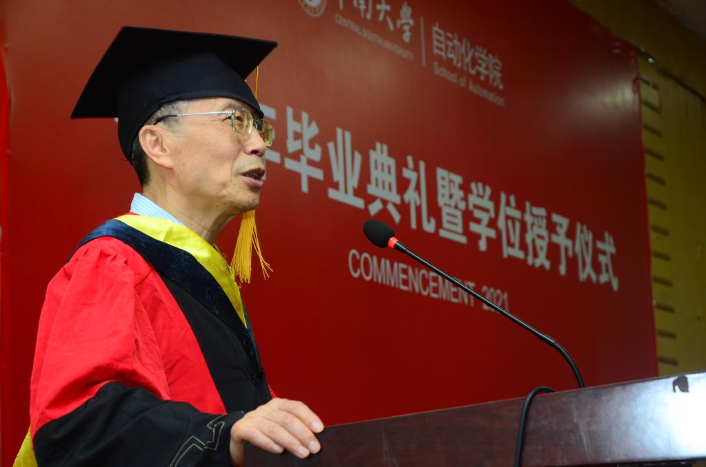 中国工程院院士、全国教书育人楷模桂卫华教授的讲话把活动推向高潮。他先是追忆起民主楼和中南大学我系的悠久历史,重温了控制学科起步和壮大的流金岁月。接下来他谈到了自己作为中南大学自动化专业第一届毕业生的求学经历,对于如何传承、传播和发扬民主楼精神有着清晰的理解和规划。最后,桂卫华教授肯定了学生们奋发向上、勇于担当的精神面貌,并热情地祝贺大家顺利毕业,鼓励同学们坚持学习,努力奋斗,用真才实学报效祖国。