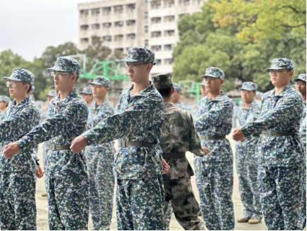 下午两点,迅速的集合后,各排开始温习昨日的摆臂和踏步走动作。右手于前,左手于后,交替进行。期间,同学们需保持一个姿势待教官检查纠正,手臂的酸痛无法摧毁他们的意志,双腿的无力无法改变他们的决心,正是如此钢铁般的毅力造就了整齐划一的动作。在练习完踏步走后,排长们带领同学们复习了立定动作,同学们眼光坚毅,身体笔直,尽显军人之姿。“左右左”“脚跟着地”,这是排长开始教导同学们齐步走要领;“一二三四——”随着响彻云霄的口号声传来,同学们展现出整齐划一的齐步走风貌。