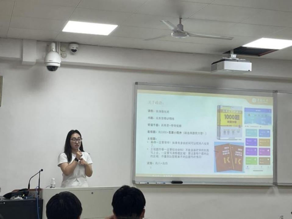 刘宇轩同学以406分的成绩考取了中南大学控制科学与工程专业。她在大会上不仅分享了自己的复习策略,建议同学们通过真题练习和及时调整备考计划来不断提高,同时要注意劳逸结合,感到疲惫就需要适当放松,还提醒大家面对当今冗杂的信息,要避免干扰、减少焦虑。