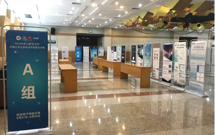 8月28日下午3点到4点之间,在杭州电子科技大学科技楼职工之家进行了作品展示评比。各队伍的海报按编号依次在大厅内摆放展示,一些作品还进行了现场演示,供参赛成员之间交流和评委老师评比。