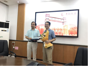 会上,王春生副院长对陈特放教授和黄挚雄教授为我院电气工程系的建设与发展所付出的辛勤劳动表示感谢,对他们光荣退休表示衷心祝贺,希望他们一如既往地关心学院发展,常回学院指导工作。唐建湘老师和陈有根老师分别回顾了两位教授在科研和教学中的工作历程,讲述了与其昔日相处的动人情节。现场播放了已毕业学生精心录制的祝福影片。学生代表上台向退休教授献上鲜花,与会教师代表纷纷发言,共同回忆与两位教授共处同事时的情景,对他们的师德、学术贡献等方面给予高度评价,表达了对他们几十年如一日辛勤工作的敬佩和不舍之情。黄挚雄老师动情地抒发了自己的退休感言,言语中流露出对与同事一起工作美好时光的留恋,对教师这个职业的热爱,饱含着对领导、同事以及学生的依依不舍之情。