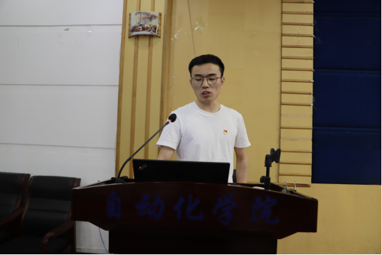 研究生九支部党员代表潘超讲授《继承红船精神,推进伟大革命》