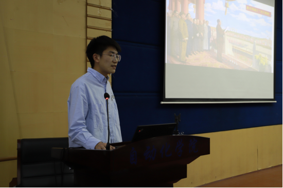本科生一支部党员代表桂江闽讲授《秋收起义—第一面军旗的升起》