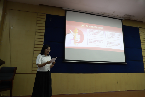 研究生一支部党员代表袁鹤讲授《学党史,悟党性》