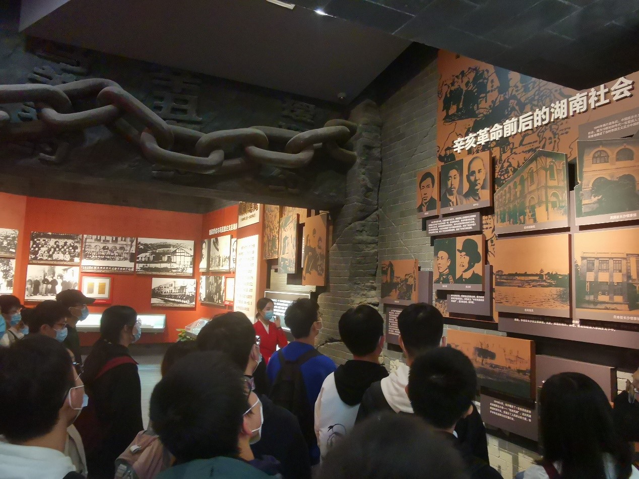 在讲解员的引导下,同学们参观了560多个党史事件和480多位湖南党史人物,通过“走着读”的形式,充分领会学习到了中国共产党领导湖南人民革命、建设、改革所取得的辉煌成就和宝贵经验。党史陈列馆布展以“敢教日月换新天——中国共产党湖南历史陈列”为主题,前三部分采用编年体形式,分别以“开辟新天地”、“描绘新画卷”、“谱写新篇章”为题,展现了中国共产党革命、建设、改革的三个历史时期,第四部分“三湘群英谱”则用专题形式,介绍以毛泽东为代表的湘籍和长期在湘工作的优秀党史人物,其中包括党和国家领导人、人民军队高级将领、著名英烈代表、各领域杰出代表和历任湖南省委书记。