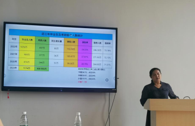 首先,黄亚副书记介绍了学院的升学就业基本情况,分析了同学们面临的升学、就业形势。黄亚副书记说,人生很漫长,但紧要处只有几步,希望考研信念坚定的同学们心无旁骛,努力备考,最终能如愿,还有一部分同学应在充分认清形势与自我的基础上,在人生关键时期做好理性决策,把握校园秋季招聘的求职就业关键期,实现高质量就业。