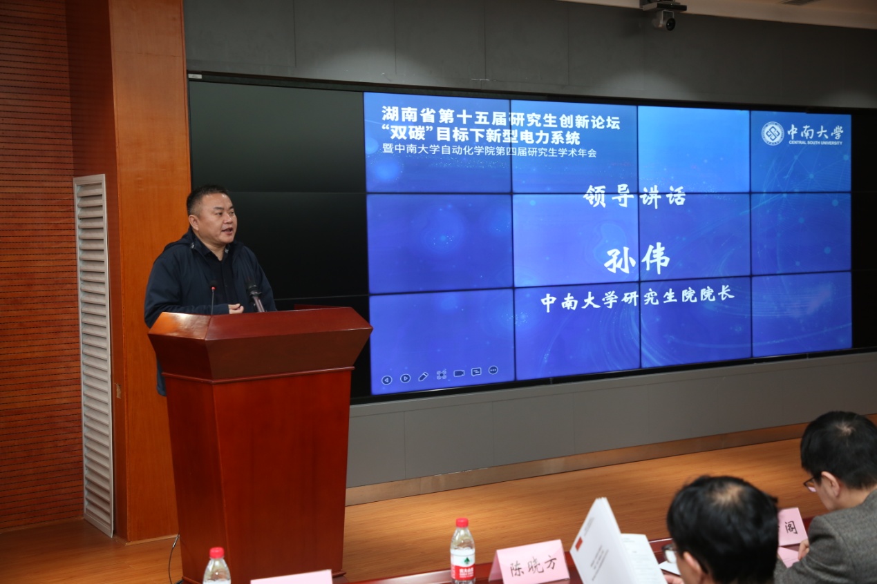 为拓宽研究生的学术视野,启发研究生的科学思维,加强校际学术交流,2022年10月29日,湖南省教育厅主办、中南大学研究生院和必赢766net手机版承办的湖南省第十五届研究生创新论坛(“双碳”目标下新型电力系统)暨必赢766net手机版第四届研究生学术年会在中南大学科教楼一会议室开幕。出席开幕式的有:中南大学研究生院院长孙伟,必赢766net手机版党委书记王一军,必赢766net手机版党委副书记、院长阳春华,中南大学研究生院副院长刘光连,必赢766net手机版副院长粟梅、王雅琳、梁步阁、陈晓方,以及特别邀请的四位报告专家和必赢766net手机版电气工程系的教师、学生代表们。开幕式由王雅琳副院长主持。