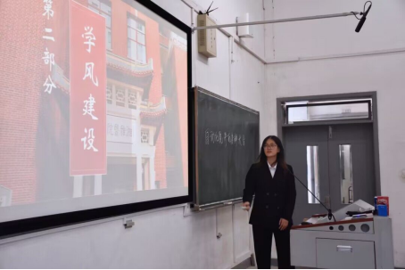 会议伊始,徐雪婷老师对本次答辩会议程和评分细则进行了介绍。本次会议流程为本科生先进班集体标兵答辩、优秀学生标兵答辩和优秀学生干部标兵答辩,根据会前的抽签顺序各类别的答辩人员依次上台进行答辩。优秀学生、优秀学生干部标兵答辩汇报人通过精彩的演讲全面介绍了自己的学习成果、实践经验、干部经历等,先进班集体标兵答辩汇报则展示了班级积极向上的学习精神、团结奋进的班级风貌和紧抱成团的凝聚力。答辩过程中,评委老师对所有汇报人的展示进行了建设性的点评,从答辩内容、时间把握、精神风貌、PPT制作与创新等各个方面进行提问,并且针对性地提出了改进建议。