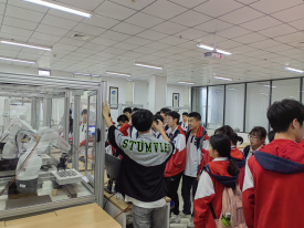 接着,学院安排了实验室参观环节,所有师生被分成两条线路参观,一条线路参观信息楼实验室,由必赢766net手机版实验教学中心夏鄂老师、刘旭明老师、李杰老师进行专业讲解,参观了电机实验室、过程控制实验室和智能机器人实验室等。另一条线路是参观机电院实验室,由陈举飞老师引导,参观了极端服役性能精准制造全国重点实验室,陈老师对实验室的研究方向、科研成果等进行了深入浅出的讲解。