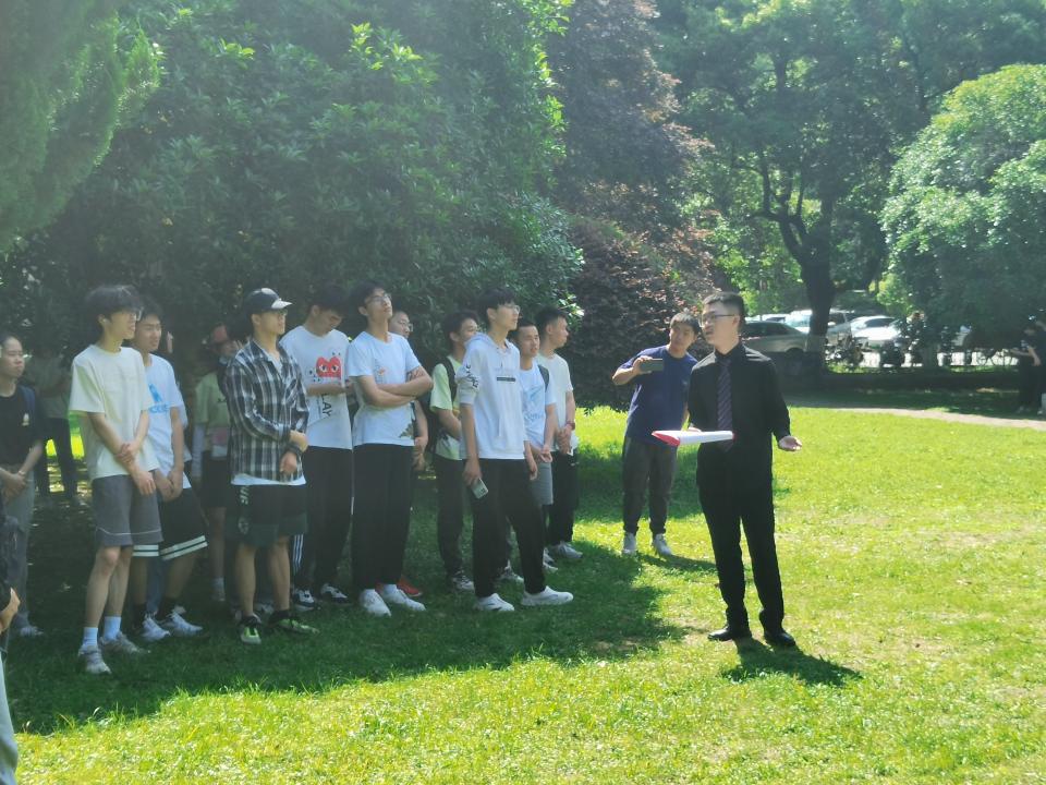 首先,大家在省园集合,讲解员为大家详细讲述了省园雕塑的故事。这块雕塑由一块形似东方醒狮的石头和一枚侵华日军轰炸长沙时遗留下来的炮弹组成,上面刻着“铭记历史,振兴中华”的碑文。这块雕塑背后,是当时高校师生在艰苦环境中对学问的专注,更是永不妥协的坚毅与勇气。