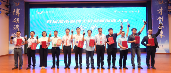 彭浩博士后(右三)团队获首届湖南省博士后创新创业大赛金奖