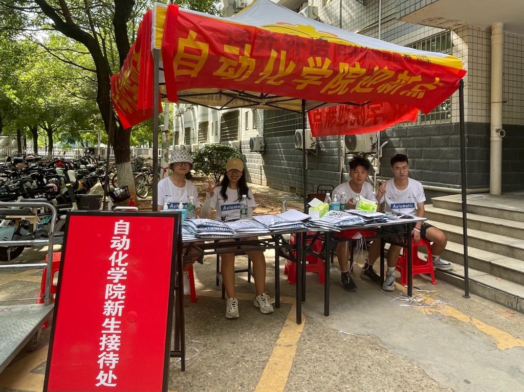 在宿舍楼下服务点,志愿者提醒新生入学注意事项,引导新生在宿舍楼下进行签到,并将行李搬送至宿舍门口。学院为2023级新生准备了礼物,分别是原创设计的校园卡卡套和文化衫。文化衫正面为Automation的学院logo,背面为代表学院五个专业的小机器人,同学们拿到属于自己的文化衫后便迫不及待进行了试穿,纷纷表达了对该礼物的喜爱和对学院的归属感。