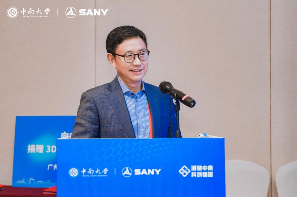 三一集团董事、三一重能董事长周福贵作为企业承办单位代表发表讲话。他分享了三一集团在智能制造、新能源及智能运营等领域的经验与成就。周福贵表示,三一集团愿与中南大学和相关企业携手合作,共同推进关键技术的研究攻坚和智能制造的转型升级,为新质生产力的发展贡献智慧和力量。