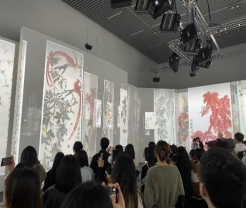 尔后,五个党支部一起前往湖南省美术馆,欣赏齐白石画展,在传统与科技中感受艺术的魅力。画展以“客中月光照家山”主题,以齐白石生平简介为始,以湘籍艺术大师为切入点,承接湖湘文脉,弘扬民族文化。画展一楼展厅设了“中国长沙湘潭人”“各有本心忘不得”等6个展厅,通过视频、动画、场景、临摹、拼图等以沉浸式体验的方式欣赏齐白石的画作,形式多样,游人如织。