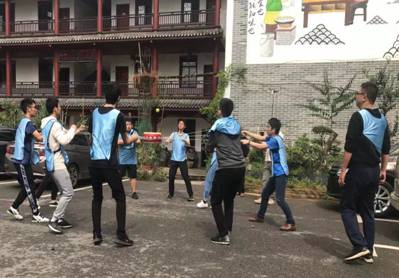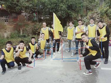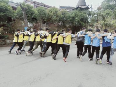 上午十点,团建破冰仪式拉开帷幕,同学们被分为两个小组,拉开了团队文化展示活动。现场两个小组各显神通,气氛活跃。随后小组间展开了激烈的团队PK赛,三个PK游戏分别为“蛟龙出海”、“鼓动人心”和“呼吸的力量”,游戏过程中,同学们热情高涨,信心百倍,凝心聚力,展示了很好的团队协作能力。