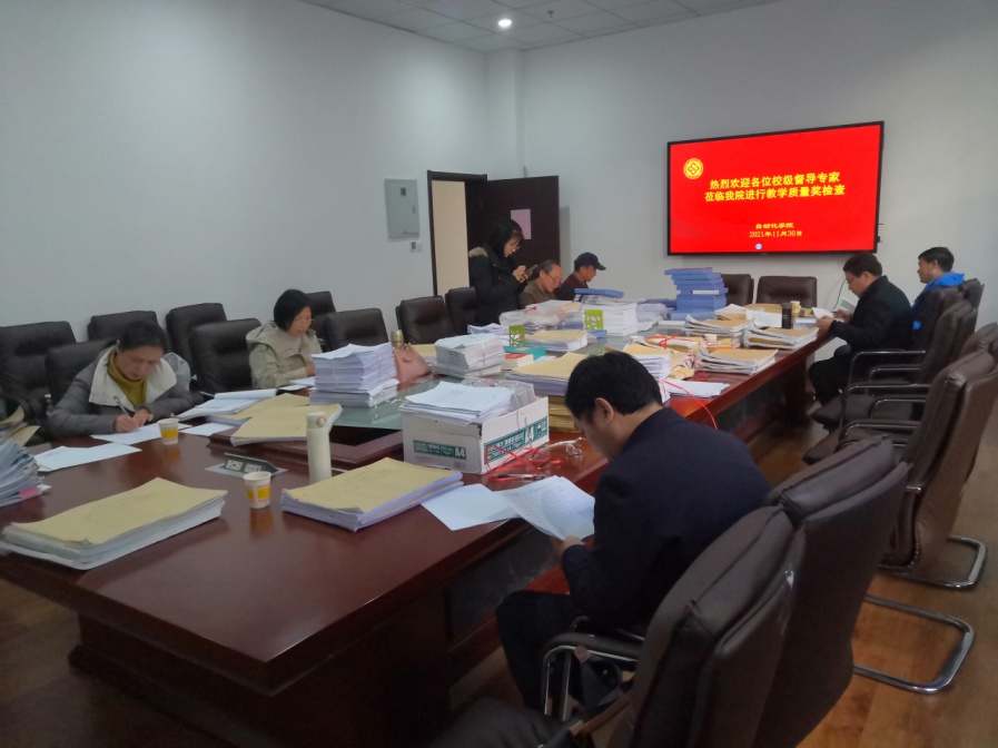 八位督导专家分两组并行投入检查工作,一组进行教学质量优秀奖审查复核,一组进行教学运行检查工作。紧张有序的检查工作从下午14:00持续到18:00,专家组针对考试试卷、毕业设计论文、实验实践环节、同行督导听课记录、学院文件制度、教学创新特色等方面进行全面细致的抽样检查。检查工作结束后立即开展了检查结果反馈会。反馈会上,检查小组组长何竞飞教授对本次教学检查情况进行了点评。他对必赢766net手机版的教学管理规范给予了高度的评价,他说,必赢766net手机版对课堂教学、听评课、课程考核、专业实习、课程论文(设计)、教学资料归档等日常教学管理工作规范到位;助课管理办法、开新课新开课试讲制度完备,材料齐全;各系教研活动记录丰富,是非常值得称赞的。同时也对此次检查中存在的问题和不足之处予以提醒。接着王小玲教授对学院教学质量优秀奖评审推荐工作给与了肯定。随后,王小玲教授传达了学校对督导专家的工作要求,并逐项解读了督导评课的要点。