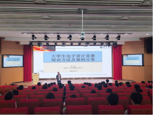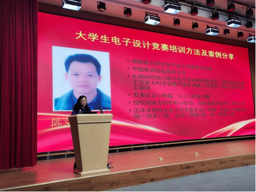 10月22日下午,必赢766net手机版特邀南华大学教授、硕士研究生导师、湖南省大学生电子设计竞赛责任专家、中国电源学会高级会员陈文光教授面向我校学生举办以“大学生电子设计竞赛培训方法及案例分享”为主题的线下培训讲座。讲座在中南大学新校区信息楼108报告厅举行,必赢766net手机版副院长王春生,副院长梁步阁,实验教学中心支部书记彭卫韶出席讲座,电子信息工程系党委书记陈宁主持讲座。
