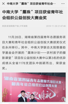 在历经两年的发展之后,露珠计划已经初具规模。为了扩大露珠计划的影响力、得到其他的公益项目的宝贵经验,他们在2019年10月报名参加了湖南省第四届青年志愿者服务项目大赛和青年社会组织公益创投大赛的公益创投类大赛,并成功闯入决赛。在2019年11月26日,决赛在永州市进行,杨潇、马文艳作为团队代表前往参赛。