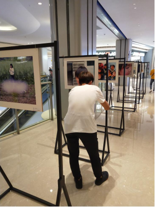 图为露珠团队在长沙国金街下的影展现场