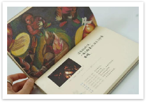 利用小摄影师的照片制成的油画册(左为照片,右为油画册)
