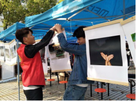 图为露珠团队在中南大学开展公益影展活动