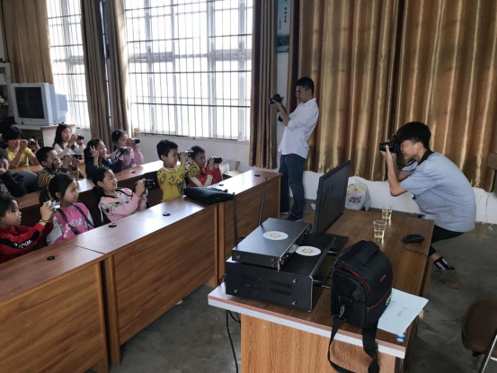图为杨潇在为烟溪完小的小摄影师们上摄影课