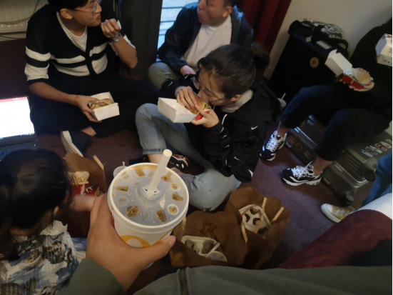 此行我们入住的是帝国理工的宿舍,我们主动放弃破冰活动,抓紧时间继续排练。七个人坐在单间宿舍的地毯上,耷拉着眼皮子啃汉堡,没想到伦敦第一餐就是麦当劳快餐。那晚我时差还没调整过来,只睡了四个小时就醒来了。我望着窗外一片黑漆漆,想象即将到来的比赛。好在大家发挥稳定,在County Hall的第一次pitch以中秋节开场,引起了大家的共鸣,获得评委和观众的好评和掌声,我们心中的大石头才放下。