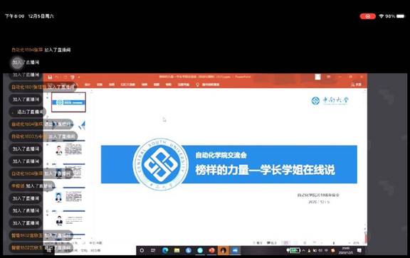 2020年12月5日晚,面向必赢766net手机版18级学生的学长学姐升学经验分享会自动化测控专场顺利举行。本次经验分享会的形式为线上直播,目的是通过往届优秀毕业生的经验分享帮助面临毕业去向选择的同学学会如何准备与规划升学。参加本次交流会的有10级自动化专业毕业生周小虎、14级自动化专业毕业生邱厚翰、14级自动化专业毕业生李锐、16级自动化专业毕业生黄佩、16级测控专业毕业生马文涛、16级测控专业毕业生高嘉智以及18级全...