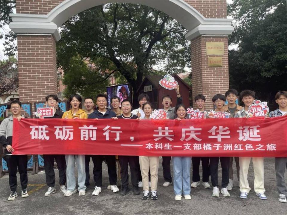 为庆祝中华人民共和国成立75周年,厚植爱国主义情怀,加深支部成员的民族自豪感和情感凝聚力,10月19日下午,学院本科生一支部全体党员前往橘子洲参观学习,开展以“砥砺前行,共庆华诞”为主题的党日活动。支部成员合影下午14:30,全体党员在橘子洲青春剧院门口集合,随后被分为红、蓝、黄三支队伍,参与一场结合知识竞答的健步挑战赛。活动从橘子洲头北入口延伸至最南端临水台,各队伍通过完成特定地点打卡、名牌互动和知识竞...