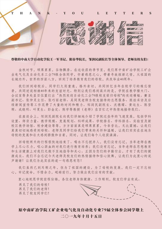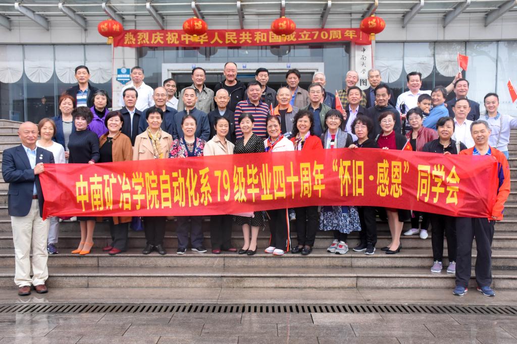 2019年10月12日上午,必赢766net手机版举行前中南矿冶学院我系79级校友返校活动,副院长邹润民等出席了本次活动。活动于8:50正式开始。在志愿者的引领下,79级返校校友乘大巴从本部出发,环行参观了新校区。经过ABCD四栋教学楼、实验楼、外语楼以及中南大学体育馆“鸟巢”,并在图书馆前合影。随后,校友们来到了校本部民主楼。面对着曾经的教学楼,校友们无比喜悦。民主楼前拍照合影时,校友们好似回到了四十年前的激情...